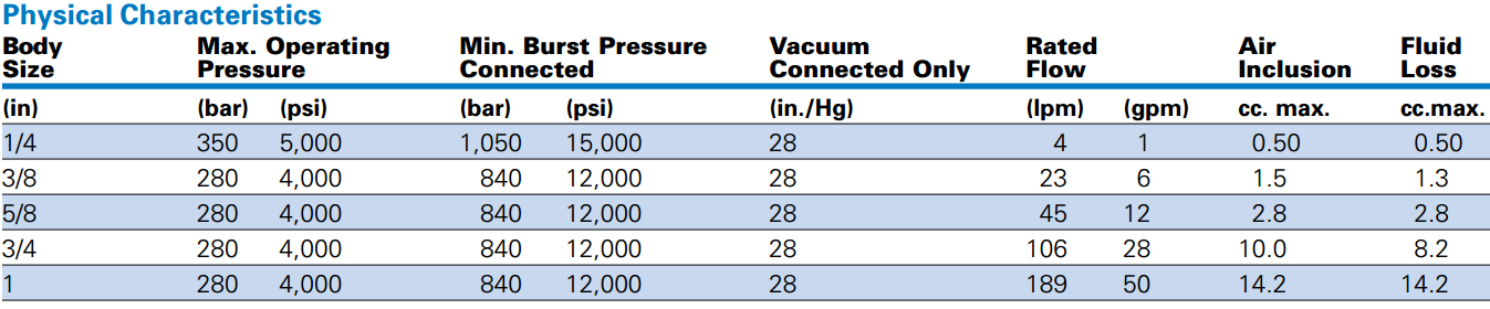 • Self-sealing poppet valve provides excellent high and low pressure sealing