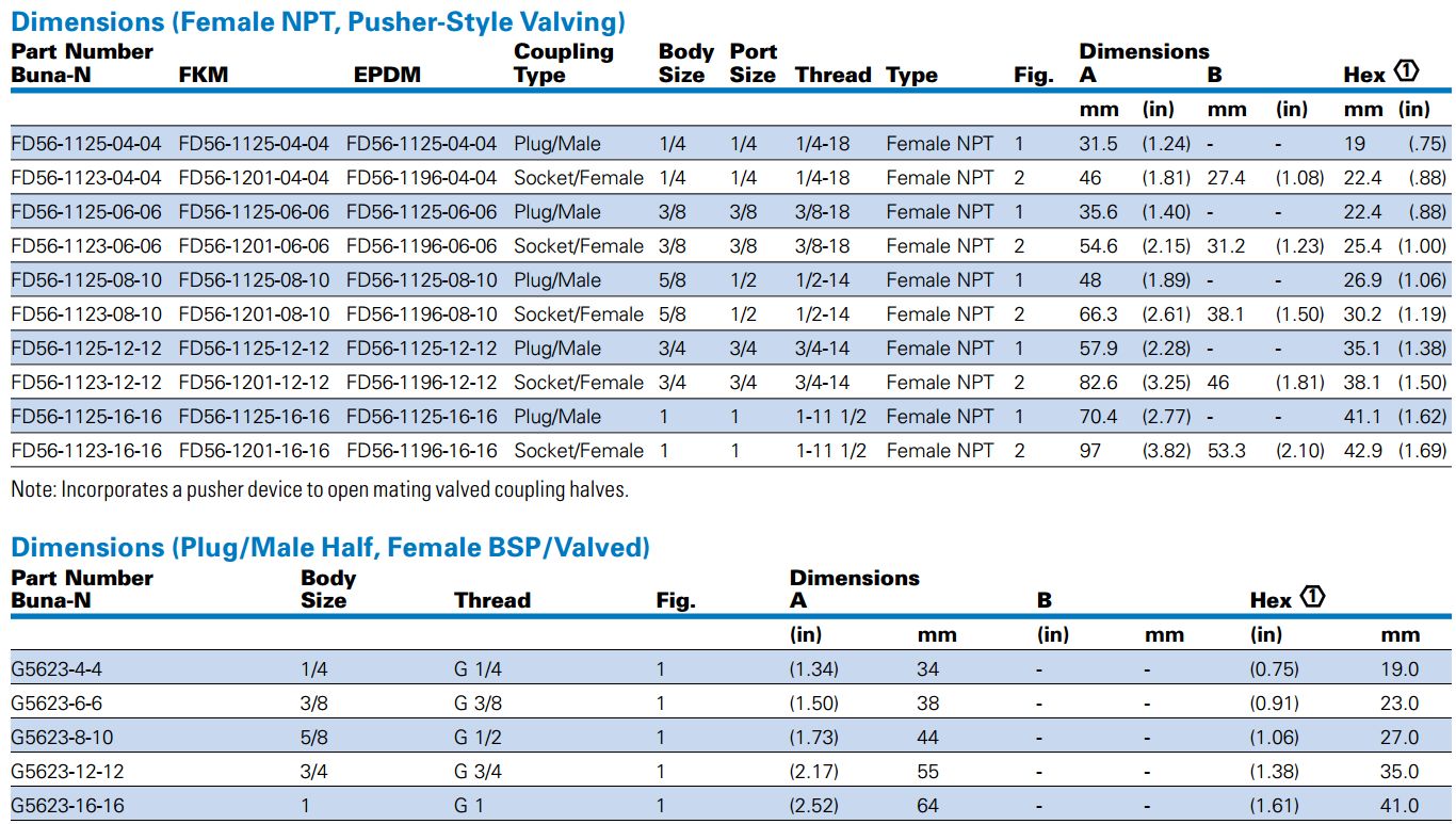 • Standard seal materials: Buna-N, EPDM and FKM